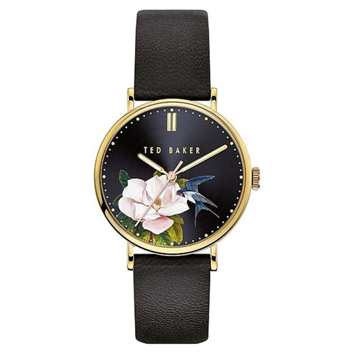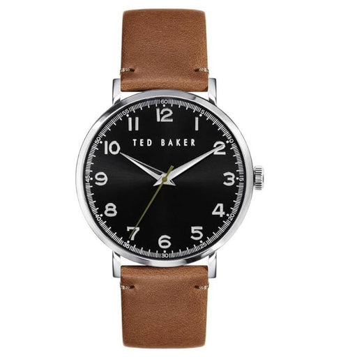Stainless steel case, Leather strap, Black dial, Quartz movement, Scratch resistant mineral, Water resistant up to 3 ATM - 30 meters - 100 feet