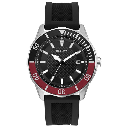 Stainless steel case, Rubber strap, Black dial, Quartz movement, Scratch resistant mineral, Water resistant up to 10 ATM - 100 Meters - 330 feet