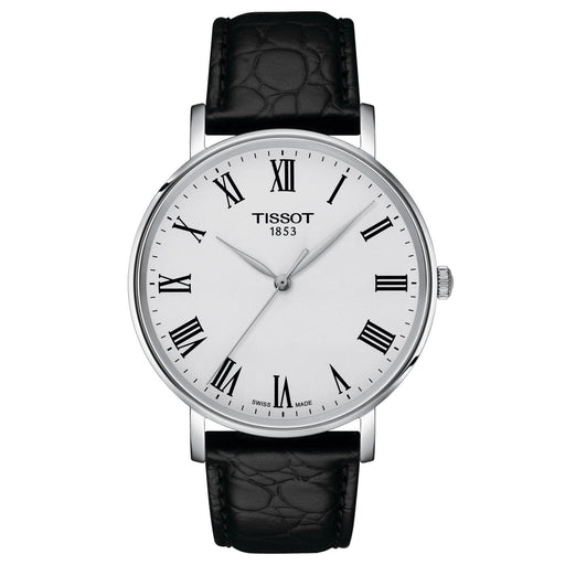 Stainless steel case, Leather strap, Black dial, Quartz movement, Scratch resistant sapphire, Water resistant up to 10 ATM - 100 meters - 330 feet
