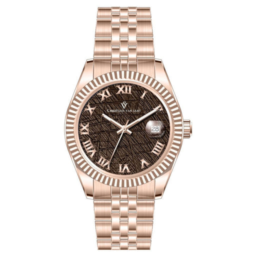 Stainless steel case, Leather strap, Brown dial, Quartz movement, Scratch resistant mineral, Water resistant up to 3 ATM - 30 meters - 100 feet