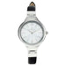 Stainless steel case, Leather strap, White dial, Quartz movement, Scratch resistant mineral, Water resistant up to 3 ATM - 30 meters - 100 feet
