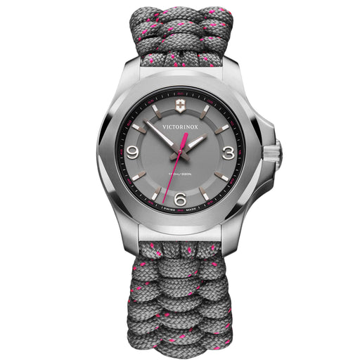Stainless steel case, Nylon strap, Grey dial, Quartz movement, Scratch resistant sapphire, Water resistant up to 10 ATM - 100 meters - 330 feet