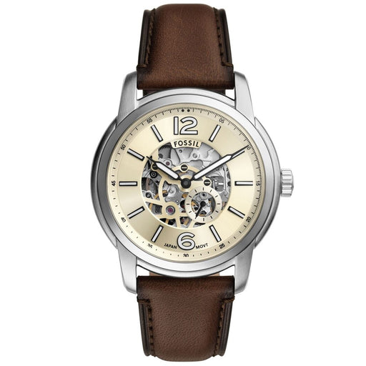 Stainless steel case, Leather strap, Beige dial, Automatic movement, Scratch resistant mineral, Water resistant up to 5 ATM - 50 meters - 165 feet