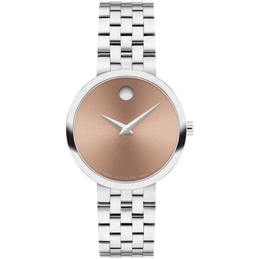 Stainless steel case, Leather strap, Pink dial, Quartz Movement, Scratch resistant sapphire, Water resistant up to 3 ATM - 30 meters - 100 feet