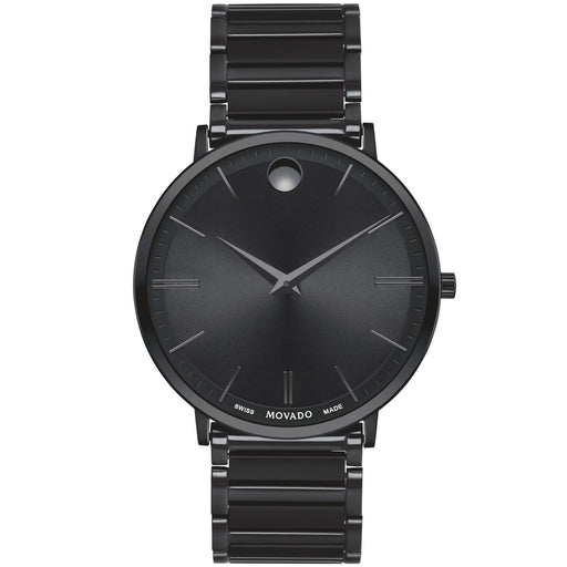 Stainless steel case, Leather strap, Black dial, Quartz movement, Scratch resistant sapphire, Water resistant up to 3 ATM - 30 meters - 100 feet