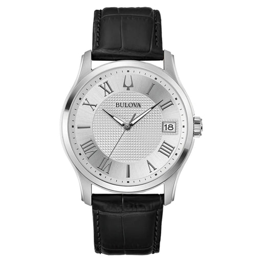 Stainless steel case, Leather strap, Silver dial, Quartz movement, Scratch resistant mineral, Water resistant up to 3 ATM - 30 meters - 100 feet