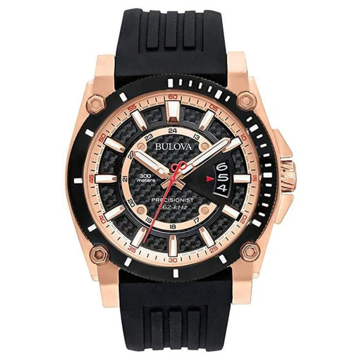 Stainless steel case, Silicone strap, Black dial, Quartz movement, Scratch resistant sapphire, Water resistant up to 30 ATM - 300 meters - 1000 feet