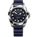 Stainless steel case, Rubber strap, Blue dial, Quartz movement, Scratch resistant sapphire, Water resistant up to 30 ATM - 300 meters - 1000 feet