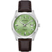 Stainless steel case, Leather strap, Green dial, Automatic movement, Scratch resistant sapphire, Water resistant up to 3 ATM - 30 meters - 100 feet