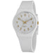 Plastic case, Rubber strap, White dial, Quartz movement, Scratch resistant mineral, Water resistant up to 3 ATM - 30 meters - 100 feet