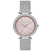 Stainless steel case, Stainless steel bracelet, Pink mother of pearl dial, Quartz movement, Scratch resistant mineral, Water resistant up to 5 ATM - 50 meters - 100 feet
